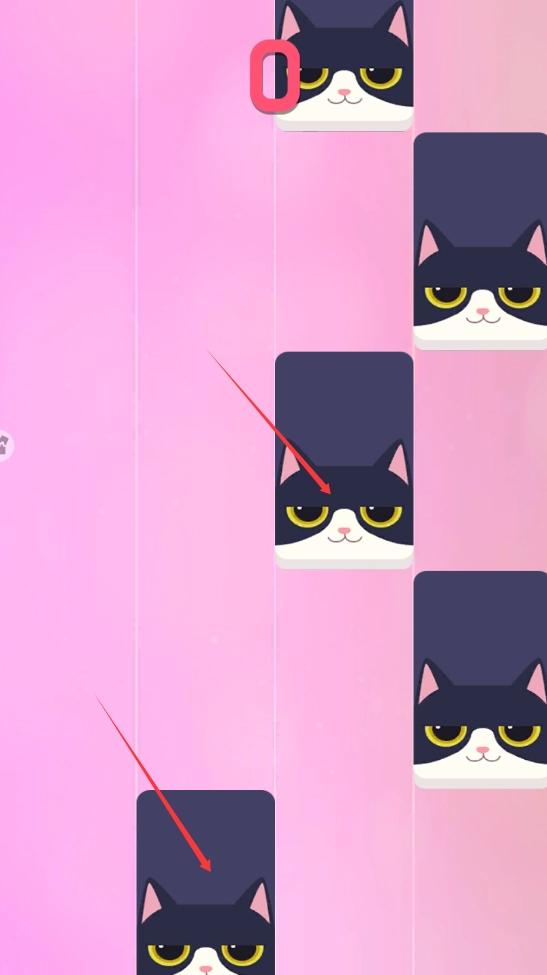 3、把手指放置在猫咪图案处,点击钢琴块进行弹奏。