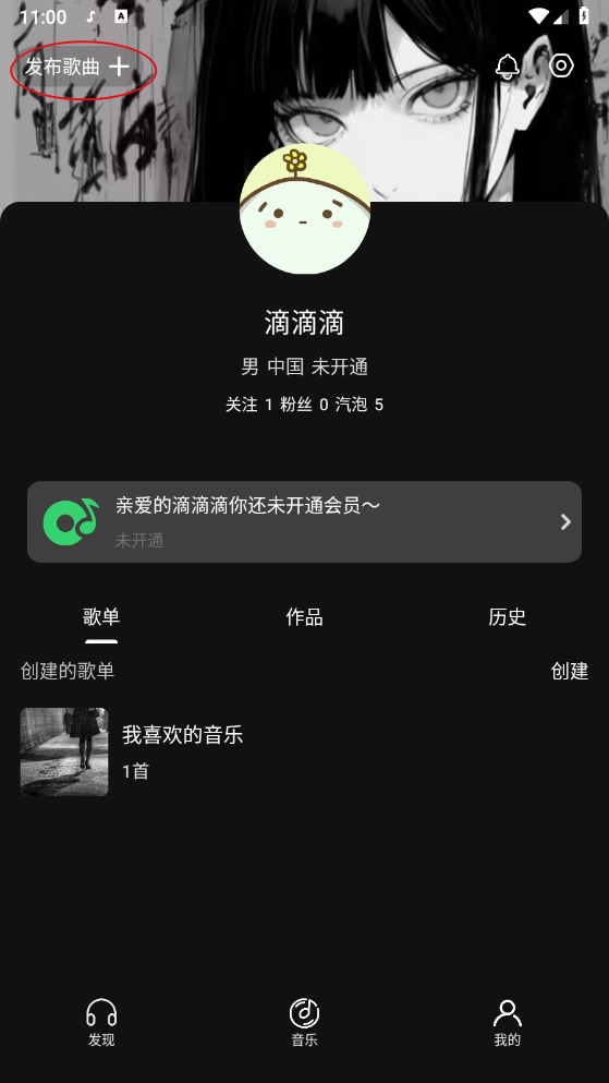最后进入"我的"板块,就可以创建个人歌单了。