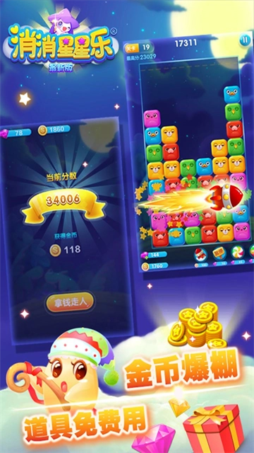 消除星星乐红包版新添了超多福利奖品,能更便捷地消除同色方块;游戏画面有了大幅优化,细节处更见匠心,为你带来独特的游戏体验,助你快速闯关赢取红包。游戏里的简单轻松治愈小游戏,让你能更好地享受解压的消除乐趣,滑动方块即可快速消除相同方块获取分数,达成关卡目标就能收获丰厚奖励,让你玩得更尽兴。