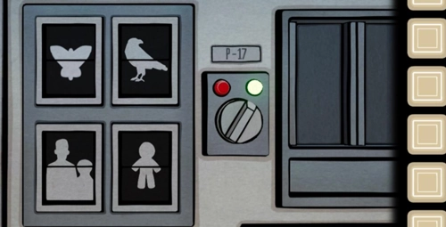 4、将视角拖动到左侧,装上开关,打开开关,根据过去右2房间上的画顺序拨动机关,获得对过去的提示。