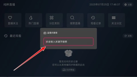 大家可以看到上方有哔哩哔哩、斗鱼、虎牙、抖音、快手等不同类型的直播内容,想看哪个板块直接点击对应的板块即可。