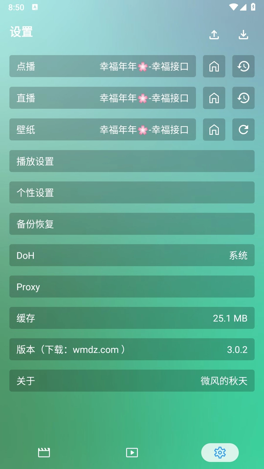 3.点击右下角设置页面,可进行播放设置、个性设置等操作