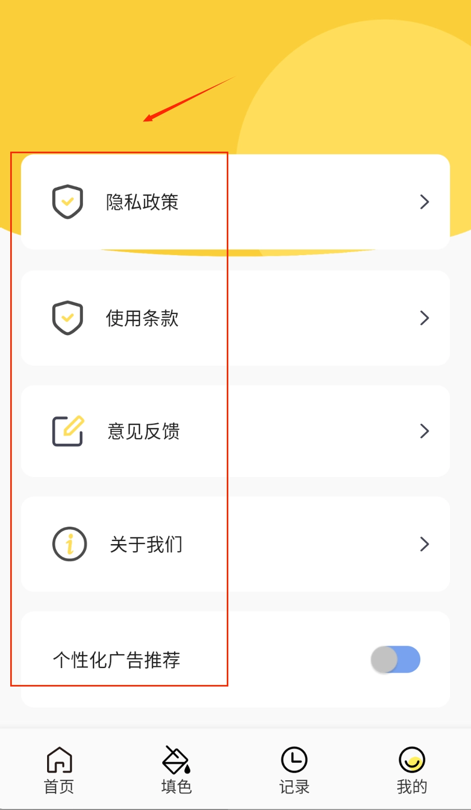 在我的页面能够对软件进行个性化设置,通过查看隐私政策知晓数据的使用方式,阅读使用条款来明确双方的权利与义务,以此保障使用过程中的安全。