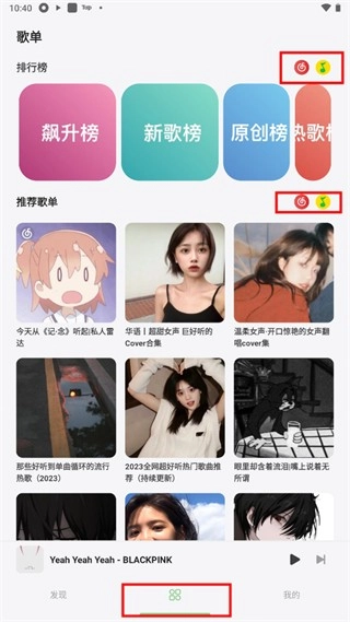 进入“歌单”页面后,点击下方对应的歌源选项,就能切换至不同的歌源。