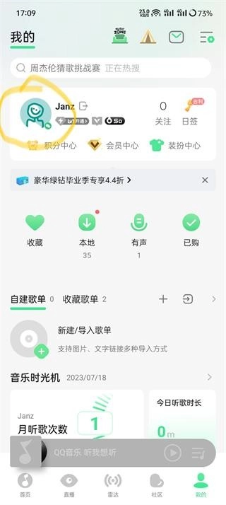 ①进入“QQ音乐”,点击“个人主页”