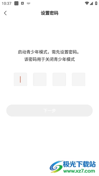 然后在弹出的新窗口里,按照需要设置一个合适的四位数独立密码,再点击“下一步”按钮。