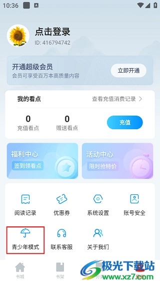 切换到个人中心界面后,需找到下方的“青少年模式”选项并点击。