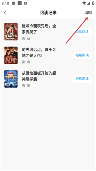 进入阅读记录页面,点击右上角的【编辑】按钮。