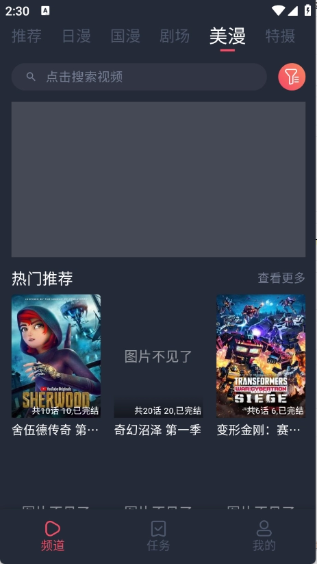 2、频道页面收录了丰富的动漫资源,涵盖日漫、国漫、韩漫等多种类型。