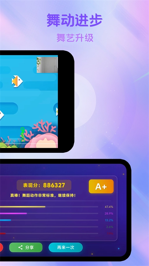 支持用户在线轻松体验舞蹈,还能进行趣味PK,尽情享受舞蹈带来的快感。