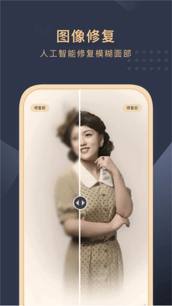 智能AI技术:借助前沿的人工智能算法,对破损照片开展智能修复工作,使模糊的图像恢复清晰质感,并且针对面部特征进行高清还原处理。