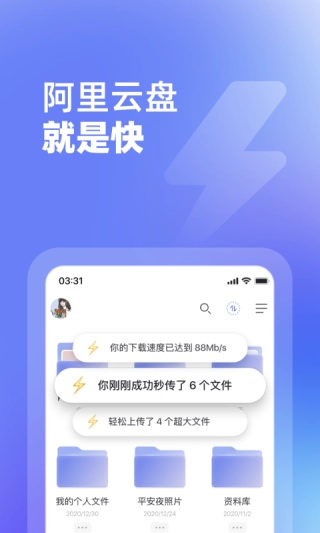 阿里云盘具备高效稳定的性能表现,上传速度快捷,运行过程流畅且稳定。用户能够体验到极速的存储服务,从而提升工作效率。
