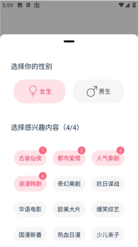打开软件后,我们会进入软件界面,在这个界面里,我们可以选择自己喜欢的标签,也可以不选,之后就能进入软件主页。
