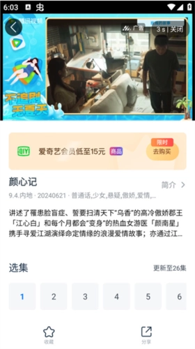 播放页面会出现广告,我们点击关闭或跳过广告后,就能正常观看剧集内容了。