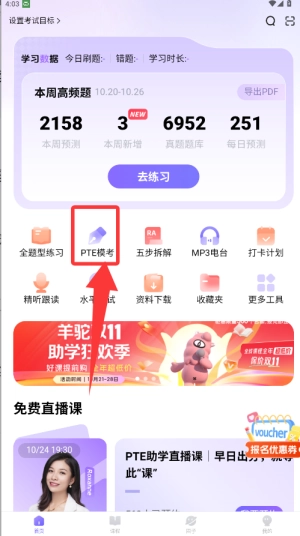 首先注册羊驼PTE软件,完成基础信息的设置。接着可以进行一次水平摸底测试,帮助系统了解你目前的能力水平。