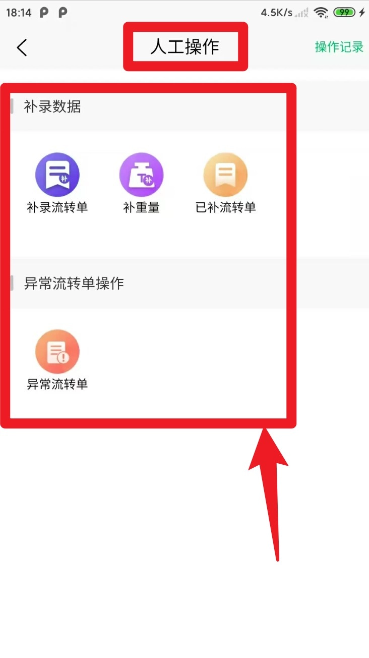 点击人工操作按钮进入补录界面后,能够手动登记补录流转单并补充重量,这种方式适用于现场无法实现自动识别的场景。
