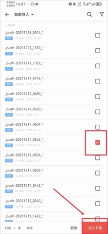 等手机扫描完成后,挑选你想导入的文件,接着点击添加到书架。