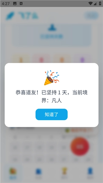 3.登录后进入首页,可以看到坚持戒律、快乐打卡等模块