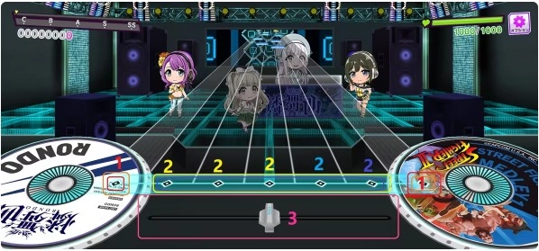 另外,会场里->装饰->默认选的第一项里的“背景”旁边的那项(MONITOR)是打歌时后面屏幕(不是指手机屏幕)会显示的画面,除了角色组合的画面外,买了新的歌曲之后这里也会增加对应的可显示画面(不是所有歌都有),还是挺有趣的(虽然打歌的时候其实顾不上看)。这个是不包括在会场特效里的
