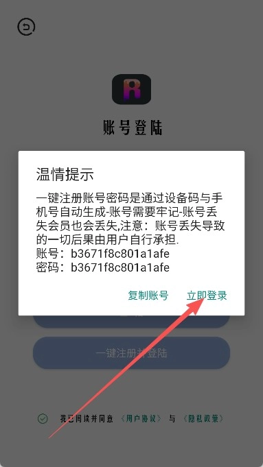 3、在登录页面里点击“一键注册并登录”按钮来启动登录流程。
