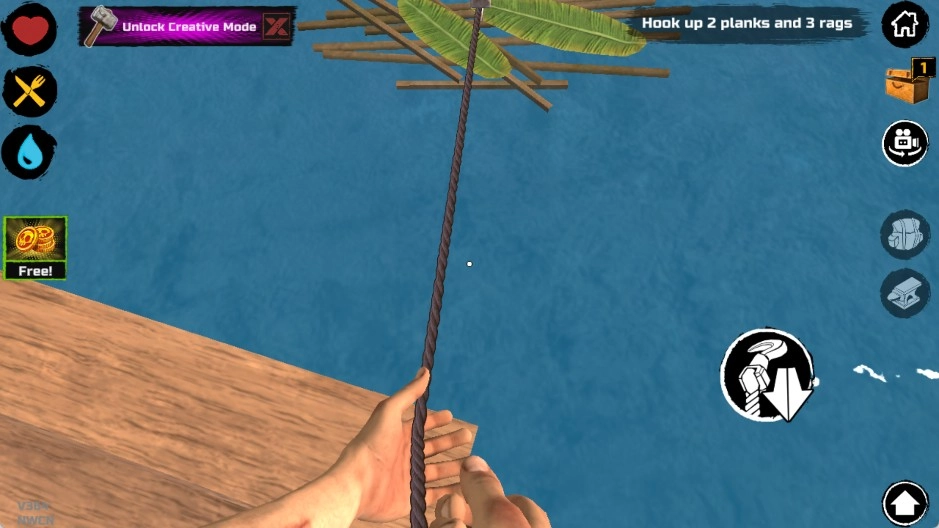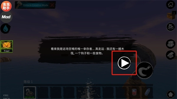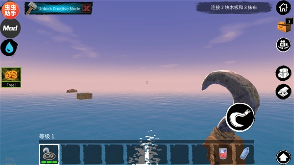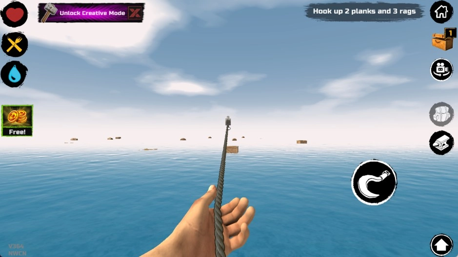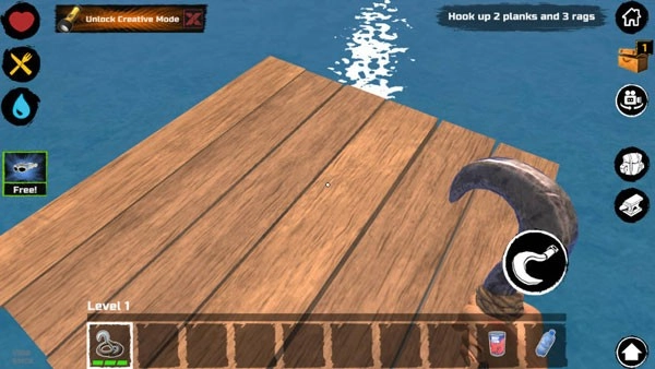 在游戏刚开始的时候,你出生时仅拥有一块小小的木板作为活动区域,还有一个钩子。鲨鱼会时不时地来攻击你的木板,要是你不进行抵抗,它就会持续啃咬,直到把这块木板咬坏。因此,你得尽快借助钩子去收集资源。水面上的资源大概可以分成四类: