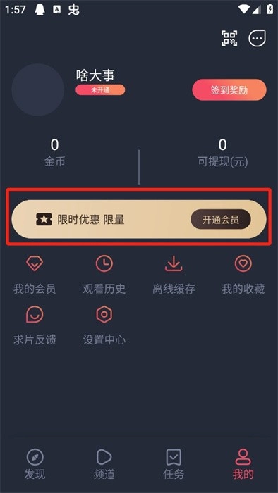 4、还有一种方式就是看小视频,也就是看广告也可以获得会员,这样也是不花钱得会员的方法。