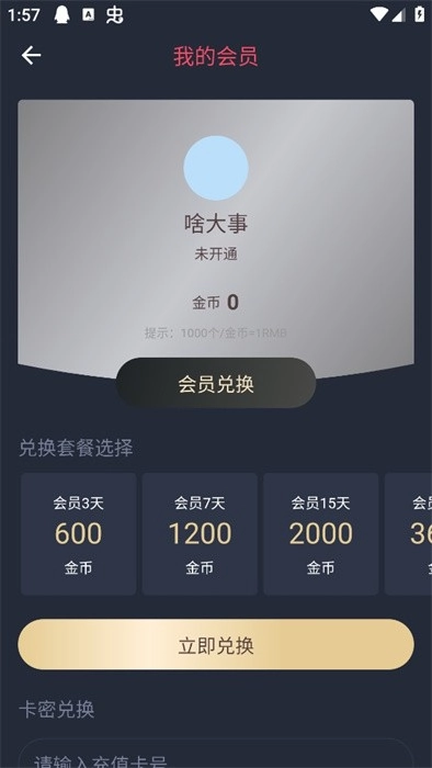 3、随后我们可以看到可以通过使用金币去进行开通,或者是使用卡密兑换会员;