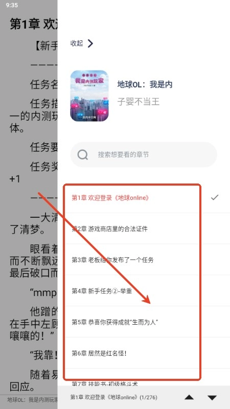 6、可以任意切换不同的章节