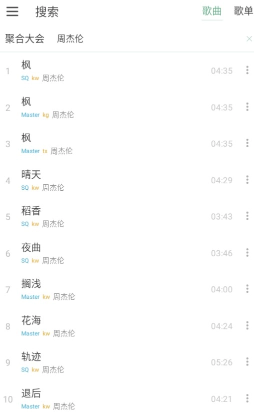 2、就可以搜索出超多的歌曲资源