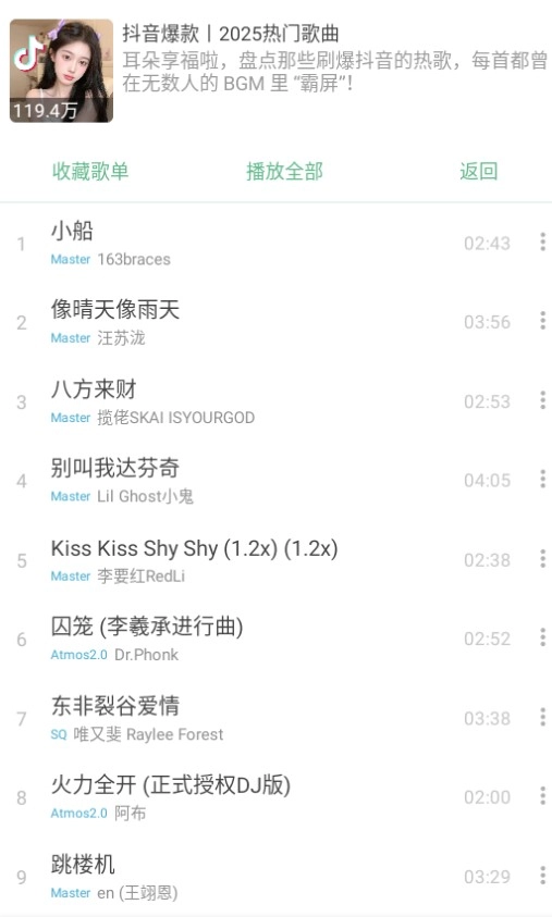 2、点击喜欢的歌单可以查看各种歌曲