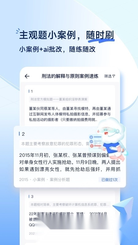 法条检索功能:全面收录考试大纲所涵盖的全部法条,支持通过关键词检索迅速定位对应的相关条款,系统后台会对法条及司法解释内容进行实时更新。