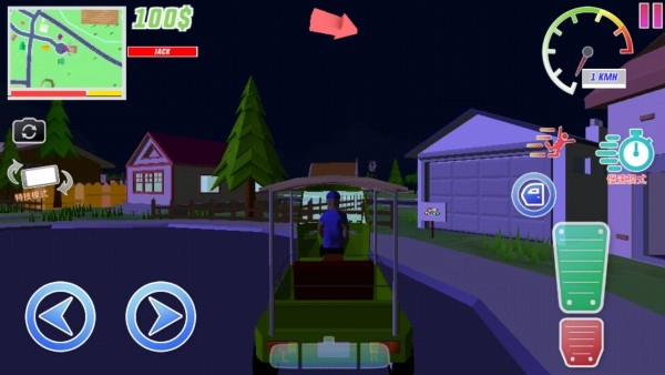 8、如图所示,玩家可借助左下角的方向键以及右下方的刹车、油门按钮来操控车辆驶向目的地,以上便是《Dude Theft Wars》中文版的玩法介绍。