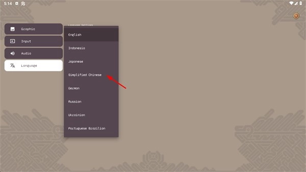 3、最后点击箭头选择simplified Chinese选项就可以将游戏设置成中文版。