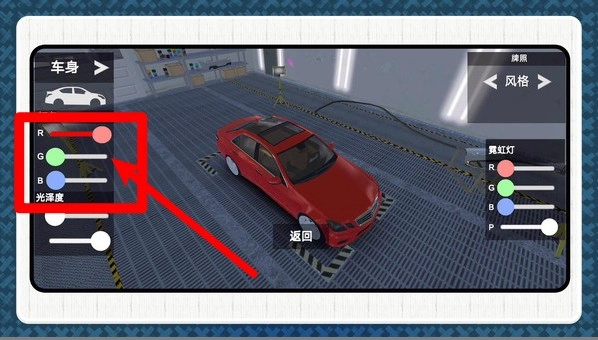 在车库模式下,玩家能够借助调整R、G、B滑块来定制赛车颜色,打造出专属的涂装风格,以此彰显独特的个性魅力。