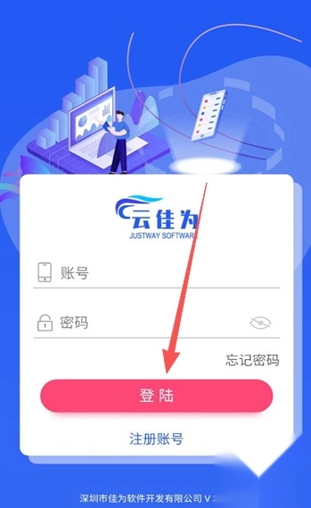 进入云佳为输入账号和密码点击登录就可以了