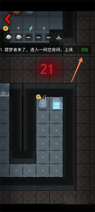 进入房间后马上躺到床上,系统会自动开始产出金币,完成“上床”这个任务就能领取对应的奖励。