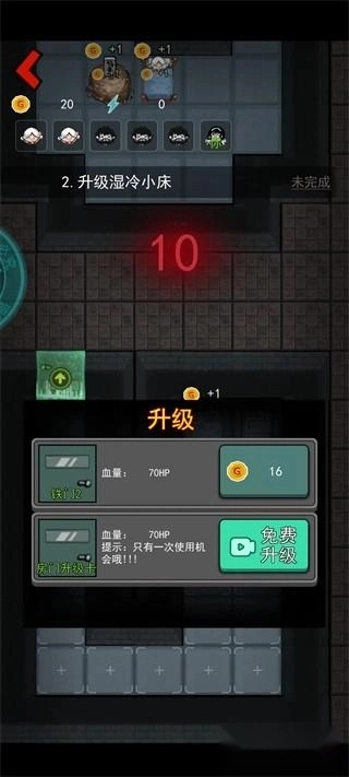优先升级门来增加血量,接着按照任务要求升级小床,以此提升金币的产出速度。