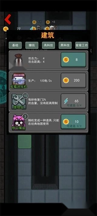 在“建筑”界面的“基础”分类中,花费8金币建造笤帚炮台,这是前期性价比最高的防御武器。