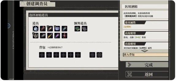 刷初始物品的时候,多准备些瓶装药,医用酒精是必带的,其他东西里瓶装药可以多备点,剩下的可带可不带。至于那两本书,我建议选加科学属性的,毕竟科学技能大概率用得上,神秘学暂时没什么用处。