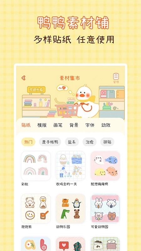 爱鸭手帐拥有灵活的编辑功能,它提供了多样的编辑选项,用户能够随意调整文字和图片的大小与位置,从而创作出独具特色的手帐作品。
