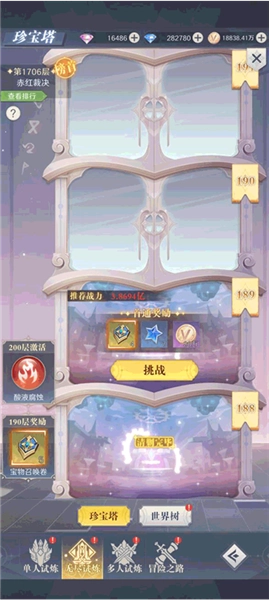 介绍:珍宝塔需逐层发起挑战,层数越高,对玩家战力的要求也就越大,唯有达到相应战力标准方可顺利通关。