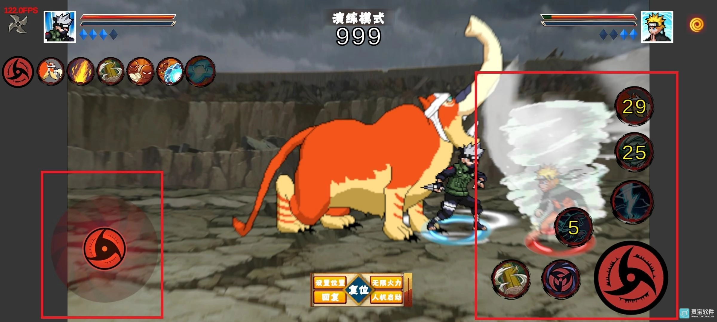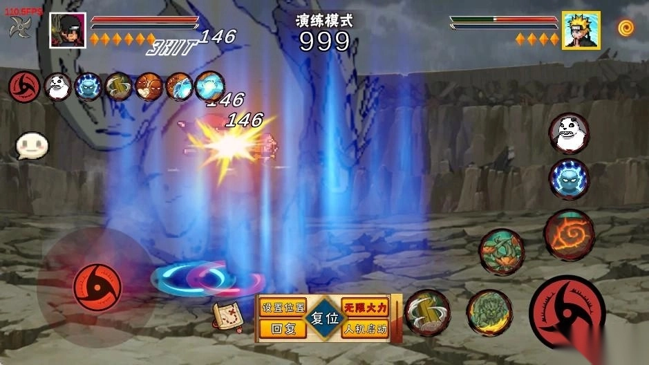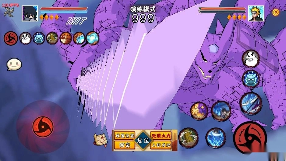 鸣人登场后召唤出九喇嘛,与此同时佐助为他覆盖上须佐能乎铠甲,两人合力向前施展出毁灭性的一击!(为防止切刀时误触,奥义需通过子技能来释放)