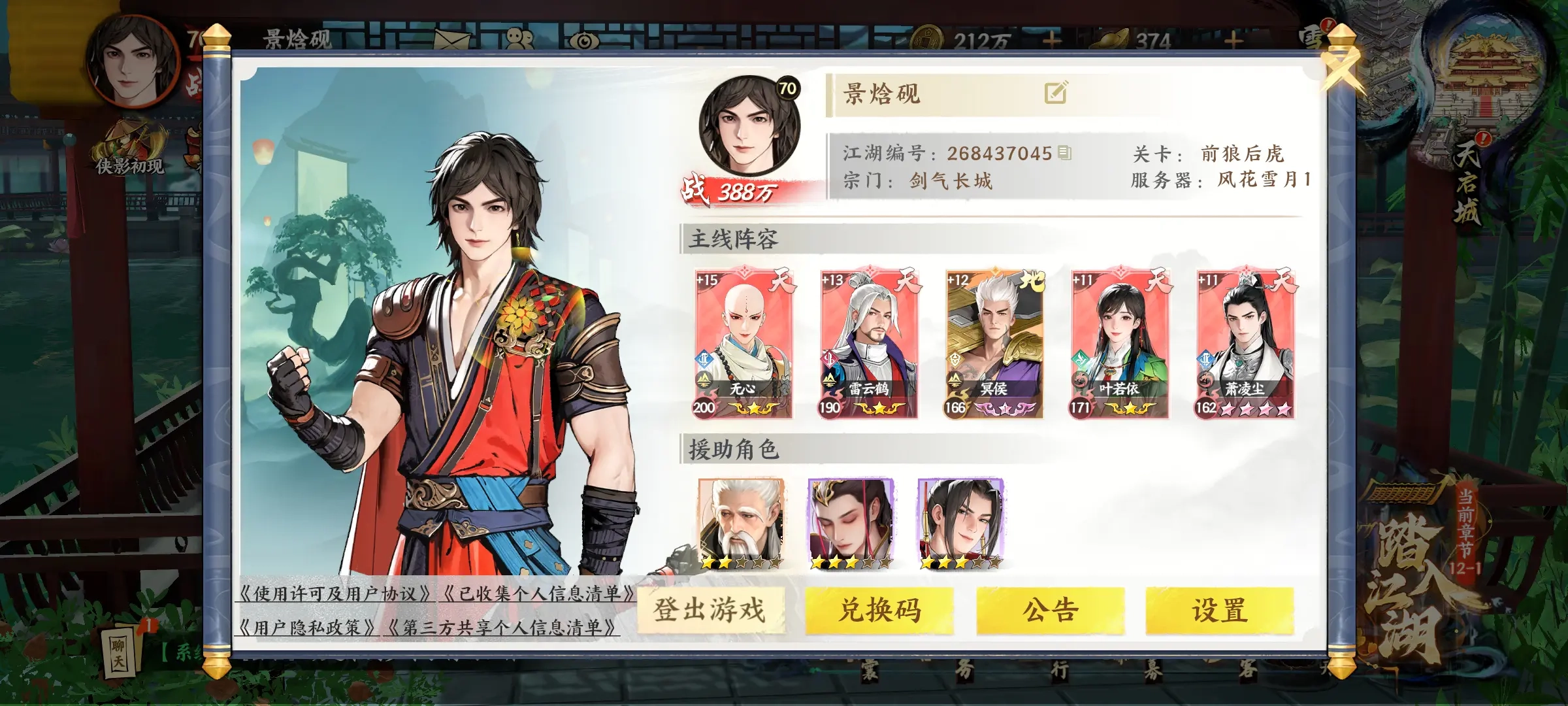 辅助侠客:飞轩、叶若依、慕凉月。