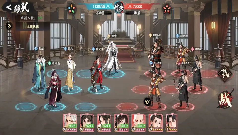 核心思路:以雷云鹤和叶若依为核心,搭配其他侠客。