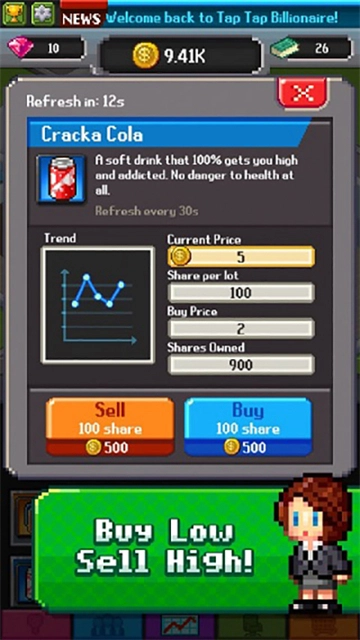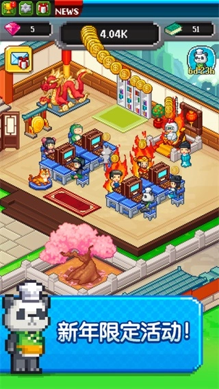 点点亿万富翁的英文名是Trillionaire,这是一款像素风格的休闲模拟经营游戏。在游戏里,你会以公司老板的身份开启旅程。你需要制定合理的营销策略,给员工安排合适的岗位,让他们各尽其责,提升工作效率,从而增加公司收入,早日成为亿万富翁。