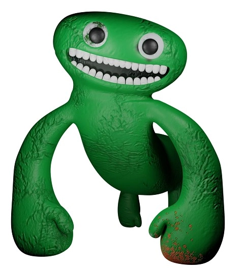 Flumbo 与 Banban 非常相似,但与他不同的是,他没有派对帽,而且是蓝色的,更不用说他的舌头没有伸出来。他的嘴巴和眼睛附近还有黄色斑纹,类似于胡须和睫毛。他最初是为了在地狱形态被创造后取代班班而创造的。