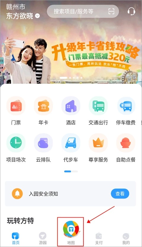 1、指尖地图,可以看到自己的位置,然后为你导航到想要去玩的项目。