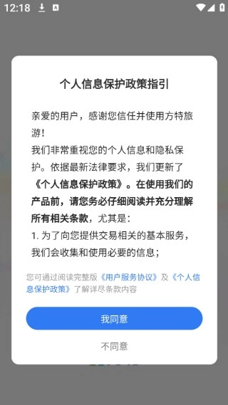 1、方特旅游,进入的时候需要先同意隐私权限。