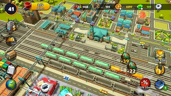 《空闲铁路大亨》最新版本是一款模拟经营铁路的手机游戏!在游戏中,玩家需要建造铁路站点,过程中会遇到不少问题,只要一步步把站点搭建完成就好,玩起来还挺有成就感的!在这款游戏的中文版里,玩家得通过投资各类设施和火车来促进业务发展,提升火车站的收益;同时,游戏内还有丰富的任务等着玩家去完成,每完成一个任务,都有机会获得不同等级的火车,让自己的火车站变得更有特色!
