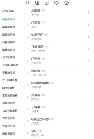 排行界面中拥有各大音乐排行榜单可以任由玩家选择;